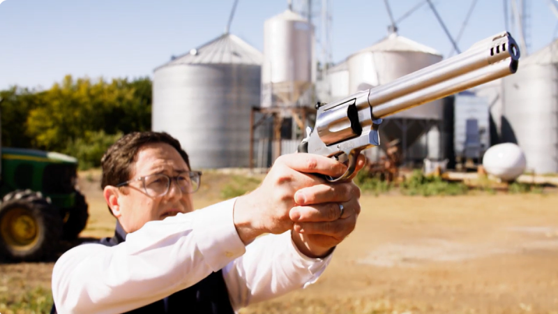 Toward the end of the video, Flood promises to do ‘whatever it takes’ to defend Nebraska while cocking a pistol and blowing the balloon to smithereens.