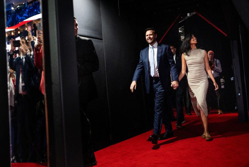 Usha Vance said that even though her husband is a “meat-and-potatoes kind of guy,” he “adapted to my vegetarian diet” — a line that appeared to draw some gasps from the convention floor. Her husband, she added, had even learned to cook Indian food from her mother. In his own remarks, J.D. Vance nodded to his wife’s heritage as he spoke about the United States’ tradition of allowing “newcomers into our American family.”