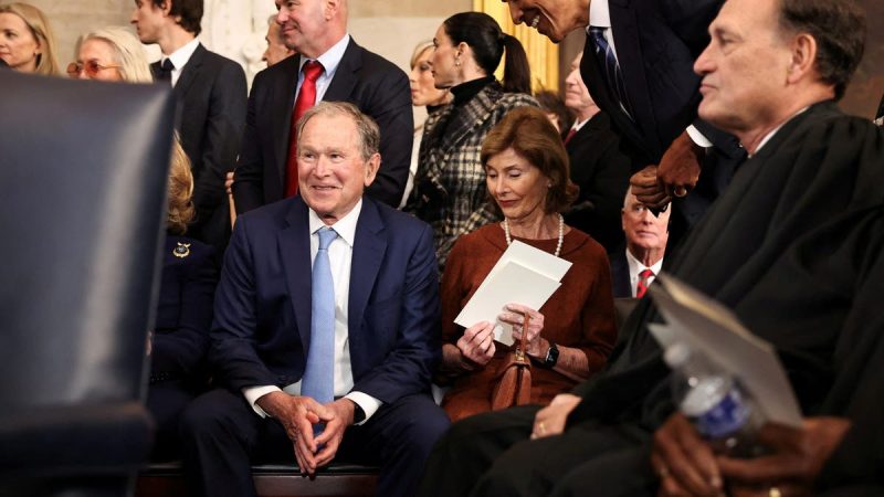 Former first ladies Hillary Clinton, Laura Bush and Jill Biden all attended the ceremony alongside their husbands. Michelle Obama did not attend.