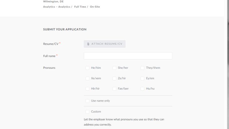 The Harris campaign appears to be offering maximum inclusivity with unlimited preferred pronoun options for potential new hires to choose from when filling out their applications.