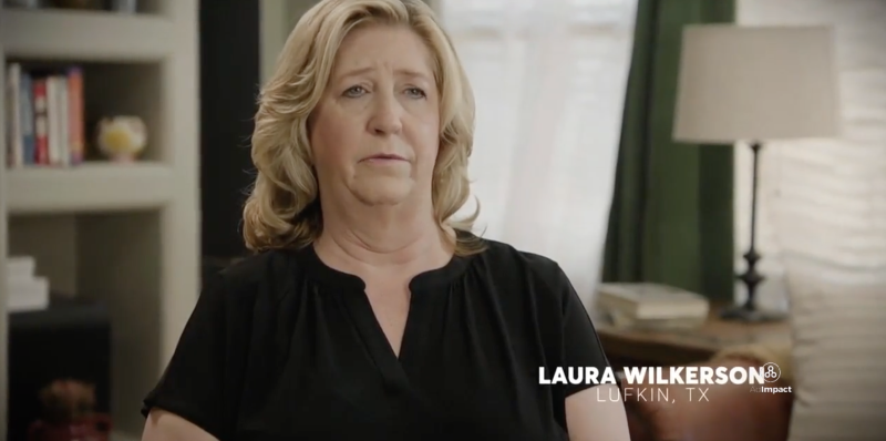 The ad packs a punch because the only voice is that of an aggrieved mother, Laura Wilkerson, who chokes up at points.