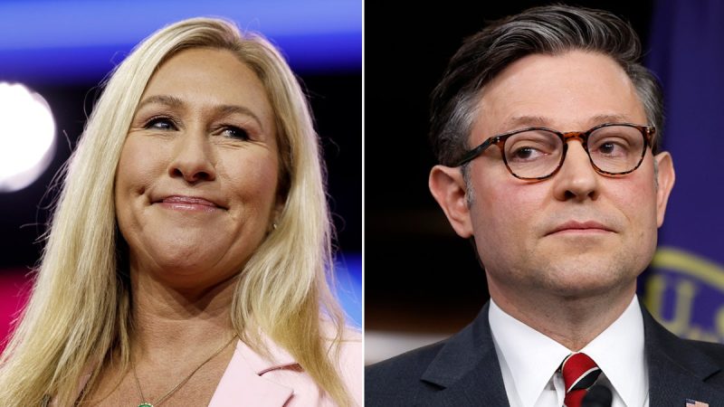 Last year, the congresswoman lambasted Johnson as ‘the Uniparty Speaker,’ asserting that he ‘is exactly what is wrong with the Republican establishment’ and had ‘done nothing for conservatives and given everything to Joe Biden and Democrats.’
