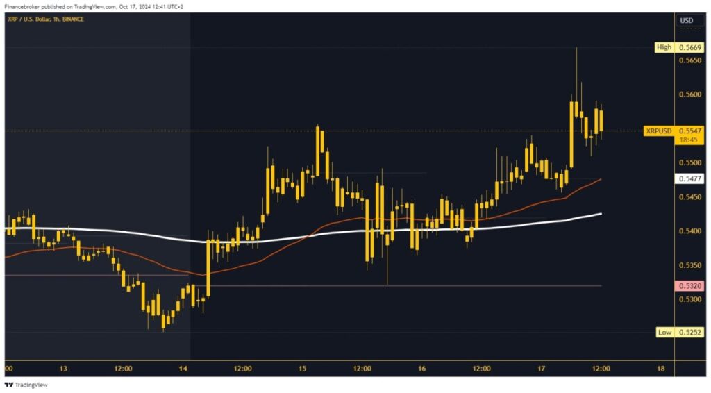 The price of Ripple is climbing today to a new weekly high at 0.5669. Not long after that, the price starts to pull back to the 0.5500 support level. For now, we are successfully holding above and waiting for the initiation of a new bullish consolidation again above the 0.5600 level. Then Ripple would have to stabilize there if it plans to stay on the bullish side. Potential higher targets are 0.5650 and 0.5700 levels.