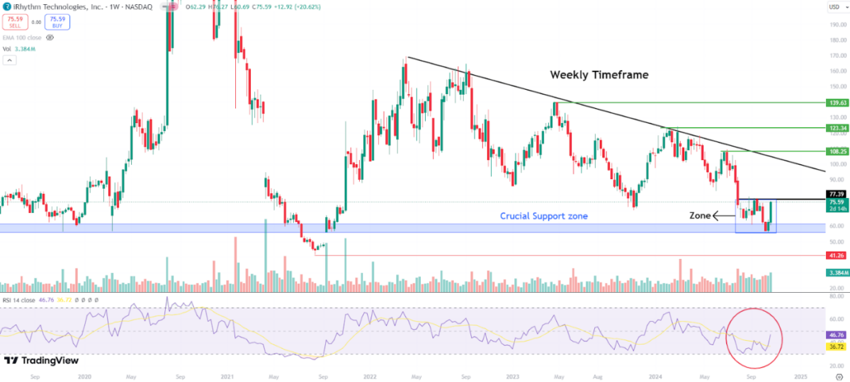 Though IRTC gave a strong up move, looking at the stock on a weekly time frame the stock has been in the selling zone since April 22. Further talking about the opportunities, the Stock is trading near a crucial support of $56.30, which can trigger huge selling if broken.
