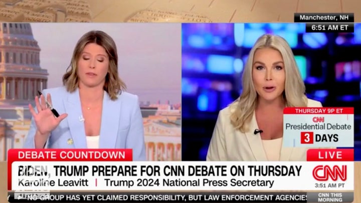 Leavitt was abruptly cut off during an interview with CNN host Kasie Hunt on Monday morning, after criticizing CNN hosts Jake Tapper and Dana Bash, who will moderate Thursday’s debate between Trump and Biden.