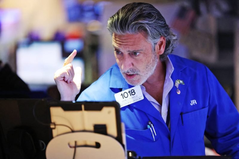 A trader works on the floor of the New York Stock Exchange ahead of the closing bell Monday. Charly Triballeau / AFP – Getty Images